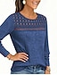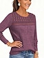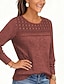 Mulheres Tops tricotados em costura Camiseta Ilhó Vintage Casual Manga Longa Gola Redonda Decote Redondo Tops regulares Diário Para Noite Final de semana Azul Castanho Avermelhado Preto Vinho Verde