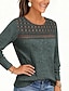Camiseta Feminina de Carnaval Gráfica Vintage Fashion Estilosa de Manga Longa Gola Careca Regular Tops Diários de Final de Semana Impressão Verde Verão Primavera Outono
