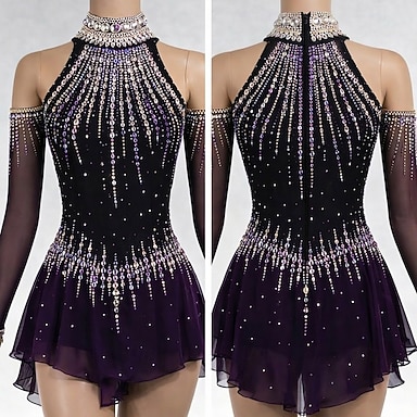 Vestidos para Patinação Artística Mulheres Para Meninas Patinação no Gelo Vestidos Roupa Roxo Claro Roxo Escuro Preto e Roxo Sem costas Com Transparência Elastano Elasticidade Alta Competição Roupa
