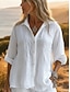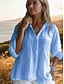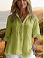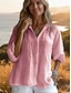 Mulheres Camisas de algodão e linho Linho de algodão sintético Botões Côr Sólida Básico Casual Manga Longa Colarinho de Camisa Tops regulares Diário Rosa Cáqui Cinzento Escuro Verão Primavera