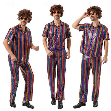 Discoteca Anos 80 Calças Roupa Camisa Discoteca Fantasia Homens Fantasia de Carnaval Dia Das Bruxas Carnaval Baile de Máscaras Espetáculo Festa Bandagem Adulto Blusa Calças
