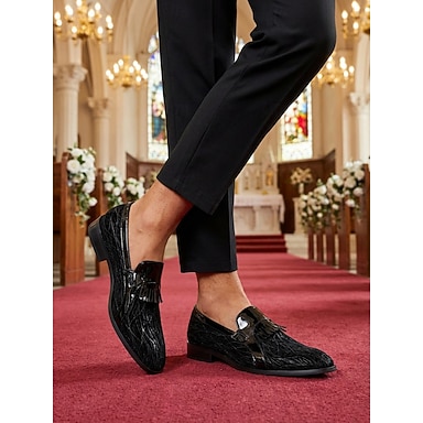 Mocassins masculinos de couro preto de alta qualidade com borla, elegantes e perfeitos para casamentos, eventos formais e ocasiões especiais.