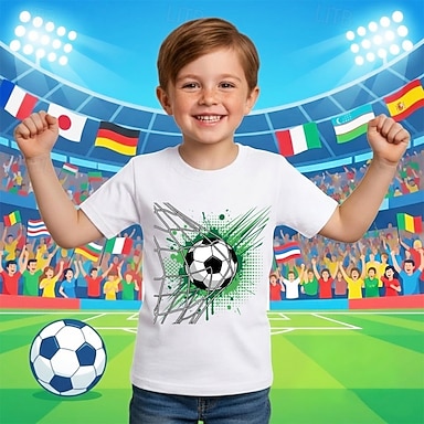 Para Meninos 3D Gráfico Futebol Americano Camisa Camiseta Manga Curta Impressão 3D Verão Primavera Esportes Moda Roupa de rua Infantil 4-12 anos Gola Redonda Casual Diário Ao ar livre Normal
