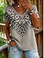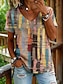 Mulheres Camiseta Imprimir Gráfico Geometria Vintage à moda Clássico Manga Curta Decote V Tops regulares Casual Diário Para Noite Azul Amarelo Cinzento Verão Primavera