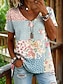 Mulheres Blusa Imprimir Floral Gráfico Diário à moda Casual Meia Manga Decote Quadrado Tops regulares Casual Diário Azul Rosa Vermelho Verde Verão Primavera