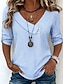 Mulheres Camisa Social Camisa casual Tecido Vintage à moda Básico Manga Longa Decote V Tops regulares Diário Feriado Para Noite Branco Verão Primavera Outono