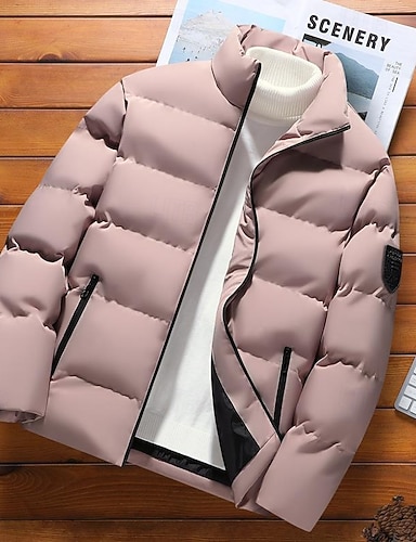 Homens Casaco de inverno Casaco puffer Acolchoado Bolsos Poliéster Ao ar livre Casual Diário Padrão Moda Roupa de rua Térmico / Quente Inverno Côr Sólida Preto Branco Rosa Azul Royal Casaco puffer
