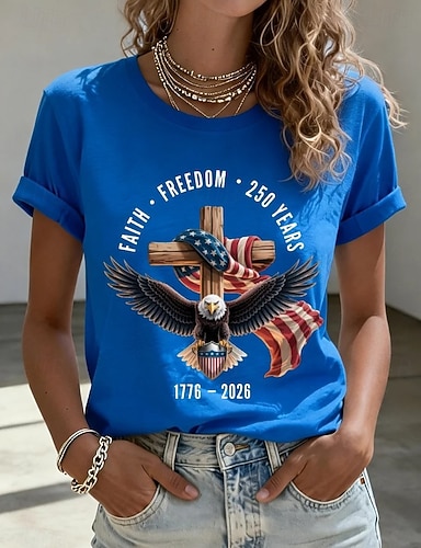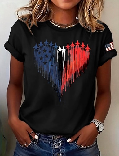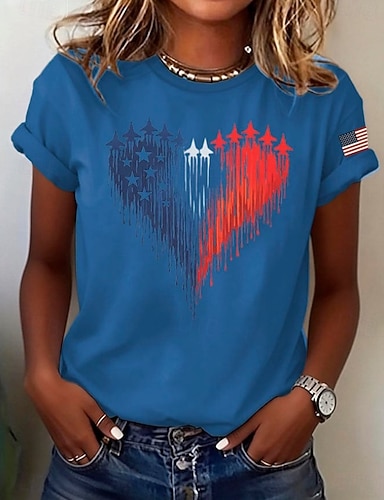 Dia da Independência Americana Mulheres Camiseta Imprimir Gráfico Letra Bandeira americana à moda Clássico Casual Manga Curta Gola Redonda Tops regulares Diário Azul Preto Verão Primavera