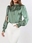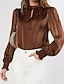 Mulheres Camisa Social Blusa Franzido Tecido Elegante à moda Manga Longa Gola Redonda Tops regulares Feriado Para Noite Marron Verde Rosa cor de Rosa Verão Primavera