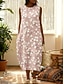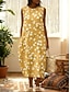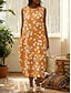Mulheres Vestido midi Linho de algodão sintético Vestido Boho Vestido de turno Vestidos Para o Verão Vintage Diário Ao ar livre Férias Normal Floral Sem Manga Gola Redonda Rosa Claro Amarelo Laranja
