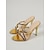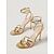 Sandálias femininas douradas de salto alto com tiras - sandálias de salto agulha com bico aberto e strass, ideais para balada e festas. &noite glamorosa fora
