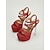 Sapatos de dança latina femininos vermelhos com strass - sandálias profissionais para dança de salão, salsa e tango, com design de tiras e salto adornado com cristais, ideais para competições ou