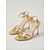 sandálias femininas de dança de salão com glitter dourado - peep toe, tiras de malha, salto médio, sapatos de tango salsa latino para competição e festa