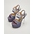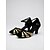 Conjunto elegante de sapato e bolsa para convidada de casamento, com tira no tornozelo e estampa floral.