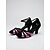 Sapato de dança feminino preto com tira no tornozelo e detalhes em cristal, elegante e profissional para bailes de gala. &sapatos de dança latina