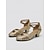 Sapatos femininos dourados para dança latina, com tira em T, sandálias de salto baixo para salão de baile e salsa, ideais para dançarinas profissionais e para ensaios e apresentações.