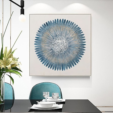 Pintura a óleo artesanal em tela decoração de arte de parede original céu azul pintura de cenário abstrato para decoração de casa com moldura esticada/sem pintura de moldura interna