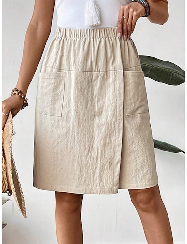 Mulheres Saia de férias Moda Casual Verão Longo Cintura Média Saias Cor Sólida Sem Elasticidade Diário Férias Preto Branco Azul Marinho Laranja Verão Poliéster