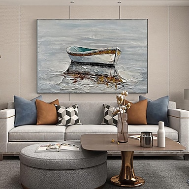 Pintura a óleo artesanal em tela, arte de parede, decoração abstrata, paisagem, barco para sala de estar, decoração de casa, rolou, sem moldura, pintura não esticada