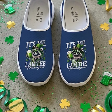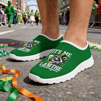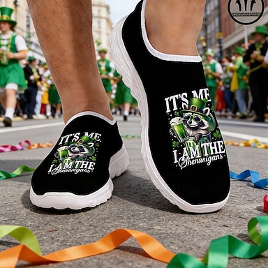 Tênis slip-on masculino com estampa de trevo para o Dia de São Patrício – tênis casuais de malha leve e confortável para desfiles irlandeses, festas em pubs e eventos de festivais. &encontros