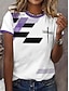 Mulheres Camiseta Imprimir Gráfico Geométrica Letra Vintage à moda Clássico Manga Curta Gola Redonda Tops regulares Diário Final de semana Azul Vermelho Roxo Verde Cáqui Verão Primavera