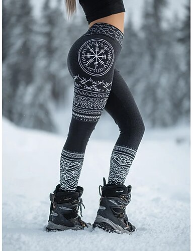 Mulheres Viking Leggings Ativo Férias Moda Comprimento total Cintura Alta Gráfico Imprimir Corte alto Conforto Exterior Confortável Com Stretch Ao ar livre Festival Preto Verão Primavera Inverno Magro