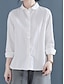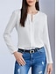 Mulheres Saia camisa de botão Blusa Patchwork Botões Côr Sólida Tecido Elegante à moda Clássico Manga Longa Colarinho Chinês Tops regulares Diário Trabalho Para Noite Branco Verão Primavera Outono