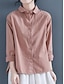 Mulheres Blusa Linho de algodão sintético Botões Côr Sólida à moda Clássico Casual Manga Longa Colarinho de Camisa Tops regulares Diário Azul Preto Branco Rosa Verde Primavera Outono