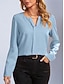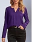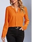 Mulheres Camisa Social Blusa de cetim Camisa casual Tecido Vintage à moda Básico Manga Longa Decote V Tops regulares Diário Feriado Para Noite Branco Vinho Roxo Laranja Verde Primavera Outono