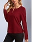 Mulheres Blusa Patchwork Ilhó Côr Sólida à moda Casual Manga Longa Decote V Tops regulares Diário Preto Branco Vermelho Verde Primavera Outono Inverno