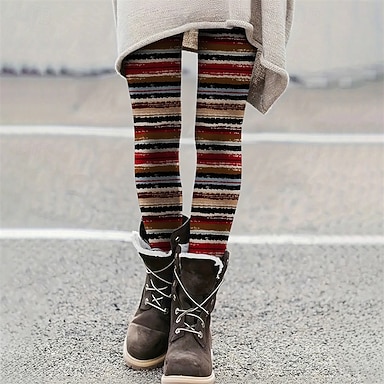 Mulheres Calças Leggings Leggings aconchegantes Roupa de rua Casual Comprimento total Cintura Alta Listra Cintura elástica Imprimir Respirabilidade Confortável Com Stretch Férias Rua Roupa Diária