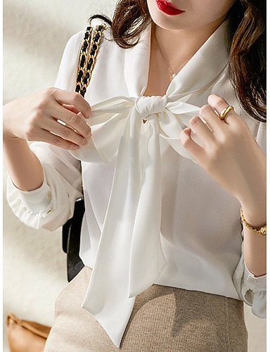 Mulheres Camisa Social Blusa Tops de chiffon gravata na frente Côr Sólida Tecido Ativo à moda Básico Manga Longa Gola Redonda Gravata no pescoço Tops regulares Diário Streetwear Escritório Preto