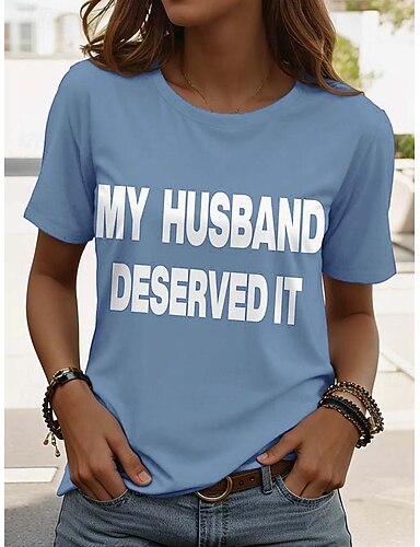 Dia da Independência Americana Mulheres Camiseta Imprimir Gráfico Letra Vintage à moda Clássico Manga Curta Gola Redonda Tops regulares Diário Azul Preto Branco Vermelho Verão Primavera