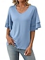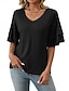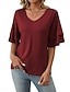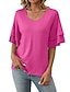 Mulheres Blusa Ilhó Côr Sólida à moda Básico Casual Manga 3/4 Decote V Tops longos Casual Diário Azul Branco Rosa Rosa empoeirada Roxo Verão Primavera Outono