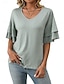 Mulheres Blusa Frufru Patchwork Tecido Vintage à moda Casual Manga Curta Decote V Tops regulares Diário Feriado Para Noite Preto Branco Verde Claro Vinho Azul Céu Verão Primavera