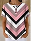 Mulheres Camiseta Imprimir Listrado à moda Casual Manga Curta Decote V Tops regulares Diário Vermelho Verão