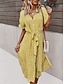Mulheres Vestido midi Linho de algodão sintético Vestido de turno Vestido A Line Vestido de verão Casual Diário Feriado Ajuste Largo Tecido Manga Curta Decote V Azul Branco Rosa Verde Verão Primavera