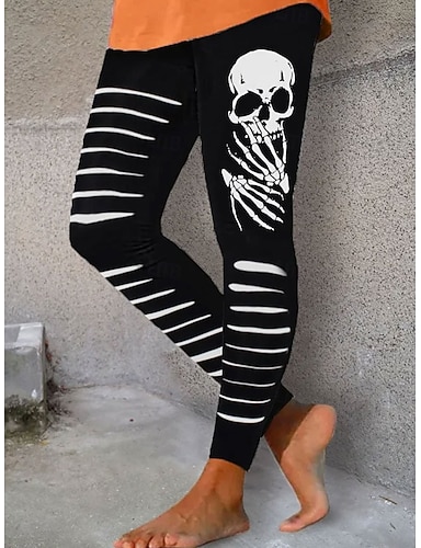Leggings Femininos Férias Moda Vintage Comprimento Total Cintura Alta Gráfico Impressão Caveira Macio Respirável Alta Elasticidade Ao Ar Livre Casual Rua Preto Primavera Outono Inverno Ajuste Slim