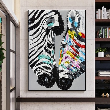 Pintura a óleo pintada à mão arte da parede pintura em tela zebra colorida decoração para casa decoração lona rolada sem moldura não esticada