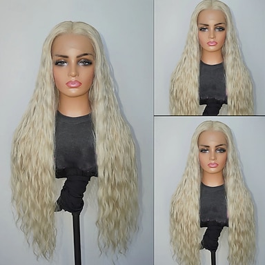 Peruca cosplay feminina com repartição central, 76 cm (30 polegadas), fibra resistente ao calor, cacheada, loira, peruca de anime para adultos, peruca de Halloween.