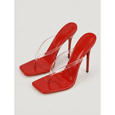 Sandálias femininas vermelhas de salto agulha com tira transparente – saltos sensuais para festas de coquetel