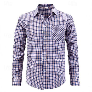 Homens Camisa Social Saia camisa de botão Xadrez Casamento Diário Vermelho Azul Manga Longa Aberto para a Lateral Primavera Outono Roupa Bolso frontal