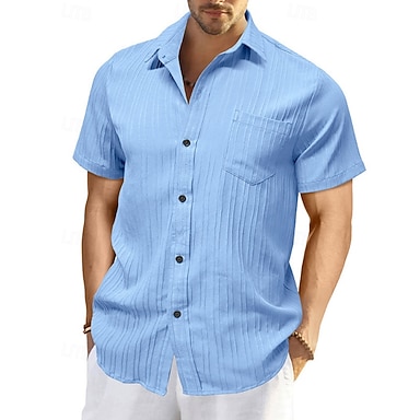 Homens Camisa Social Malha canelada Camisa casual Preto Branco Azul Royal Marron Verde Manga Curta Tecido Tiras verticais Colarinho de Camisa Casual Diário Botões Roupa Elegante Moda Casual