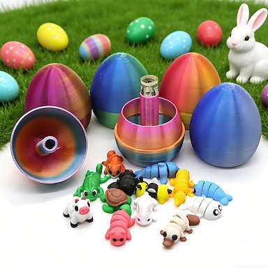 Ovo de Páscoa impresso em 3D com 10 miniaturas de animais aleatórios dentro, brinquedos articulados impressos em 3D, lembrancinhas para cestas de Páscoa, presentes divertidos e colecionáveis para