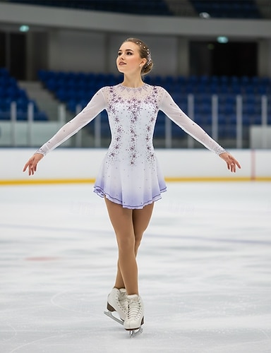 Vestido de patinação artística com gradiente de manga comprida, traje de competição personalizado