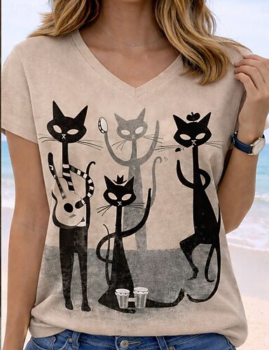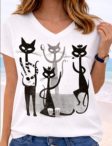 Dia dos Namorados Mulheres Camiseta Imprimir Gráfico Animal Xadrez Vintage à moda Clássico Manga Curta Gola Redonda Tops regulares Diário Para Noite Final de semana Branco Rosa Vermelho Verão