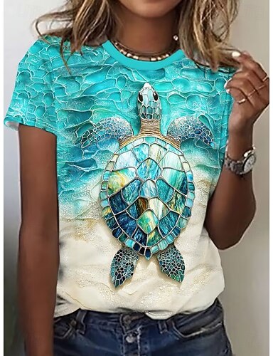 Mulheres Camiseta Imprimir Gráfico Animal oceano à moda Clássico Casual Manga Curta Gola Redonda Tops regulares Diário Azul Rosa Verde Azul Claro Verão Primavera