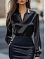 Mulheres Camisa Social Elegant Top de cetim Blusa Franzido Cordões Com Pregas Côr Sólida Tecido Elegante Vintage Diário Manga Longa Gravata no pescoço Tops regulares Diário Trabalho Feriado Preto