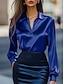 Mulheres Camisa Social Elegant Elegante Top de cetim Franzido Tecido à moda Moderno Manga Longa Manga lanterna Decote V Tops regulares Trabalho Feriado Para Noite Azul Champanhe Roxo Outono