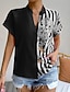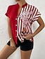 Mulheres Camisa Social Blusa Patchwork Gráfico Bloco de cor Vintage à moda Manga Curta Decote V Tops regulares Diário Feriado Para Noite Azul Preto Branco Rosa Vermelho Verão Primavera